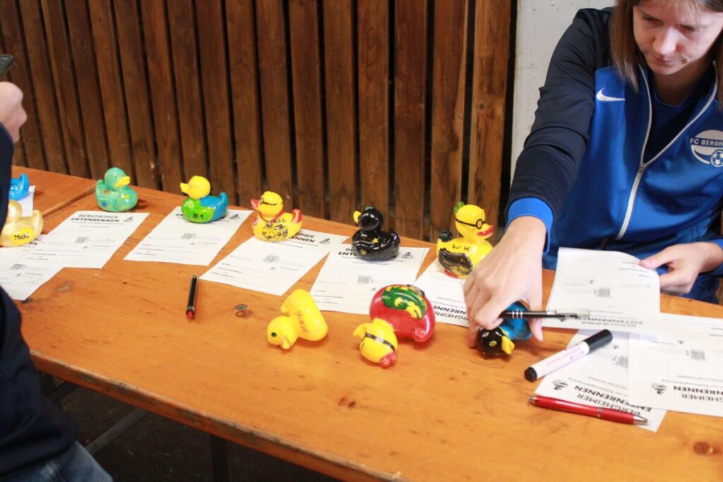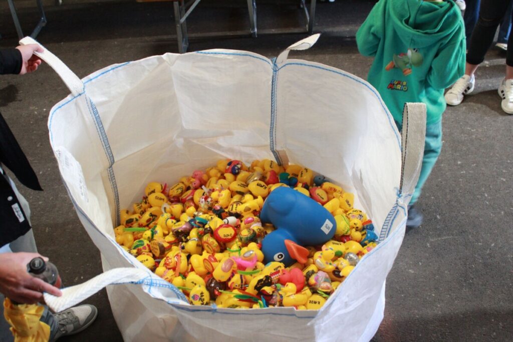 Trotz eher trüber Wetterprognosen in der Woche zuvor blieb es beim Entenrennen trocken – beste Voraussetzungen also für unsere 853 bunt gestalteten Rennenten und ihre motivierten Trainer:innen.
