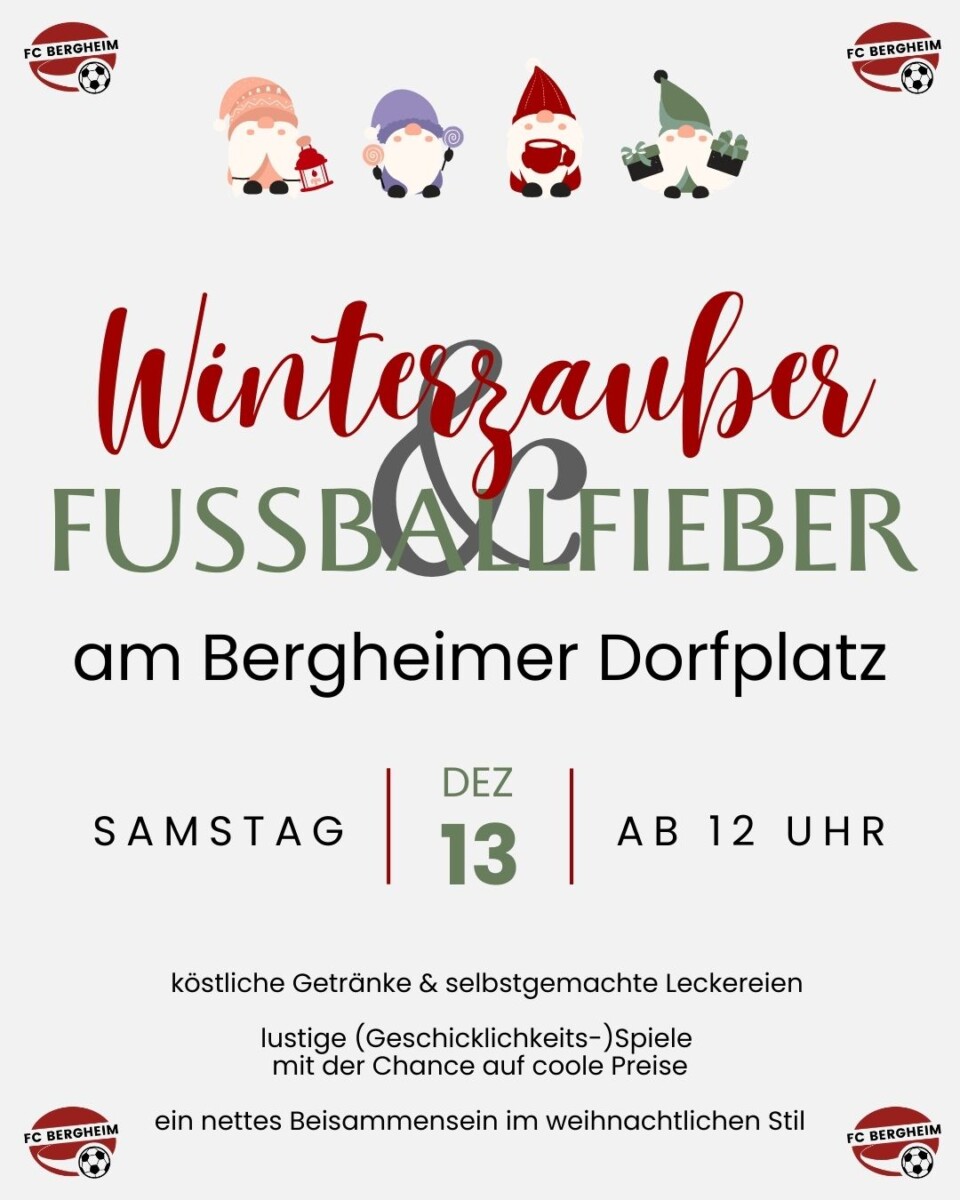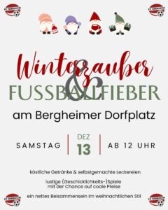 Zum ersten Mal lädt der FC Bergheim am Samstag, den 13. Dezember, ab 12 Uhr zu einem besonderen Winterevent auf den Bergheimer Dorfplatz ein.